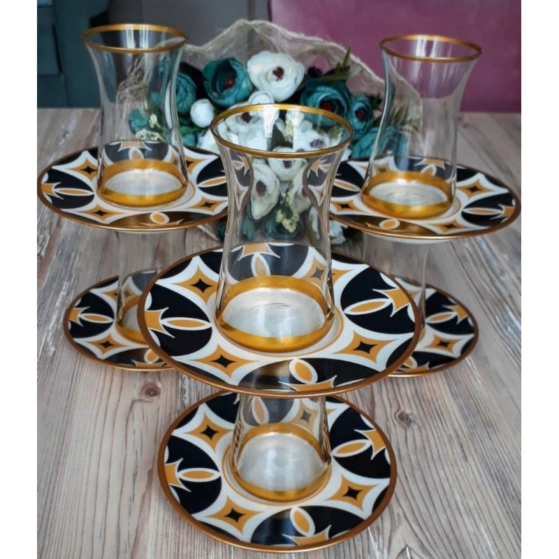 12 Pcs Thin Waist Yakamoz Turkish Tea Set
