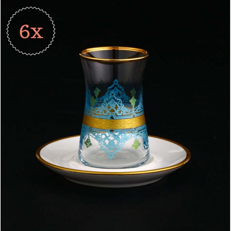 Ansar Blue Turkish Tea Set With Porcelain Saucers