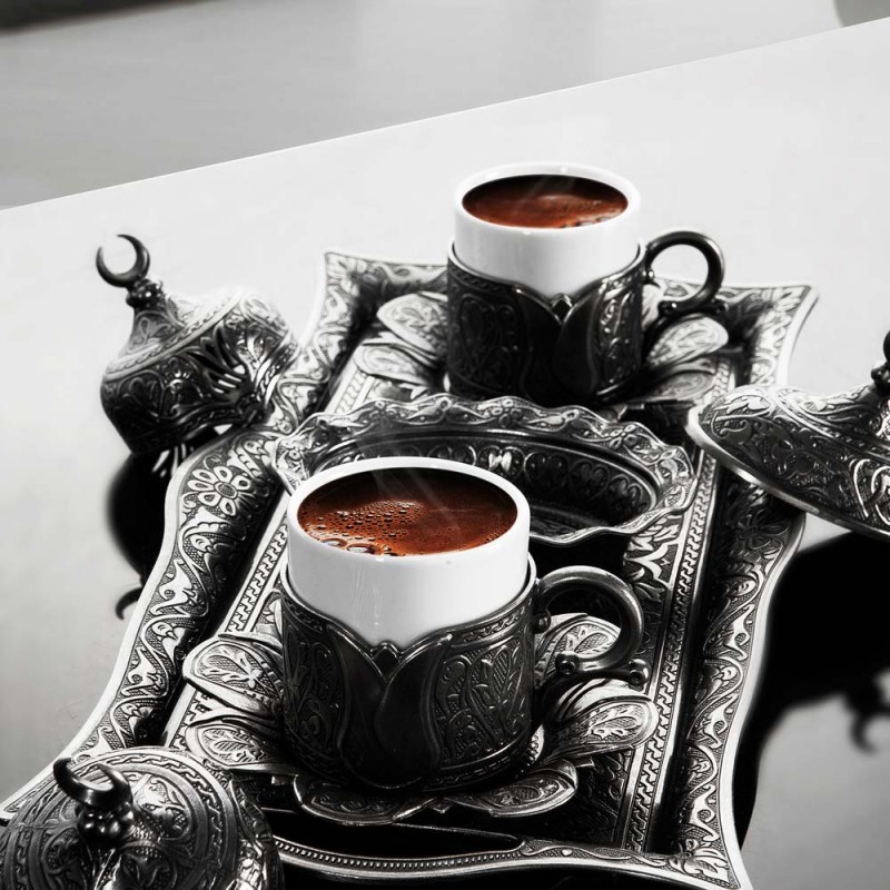 Antique Turkish Coffee Set For Two Person Tulip Design