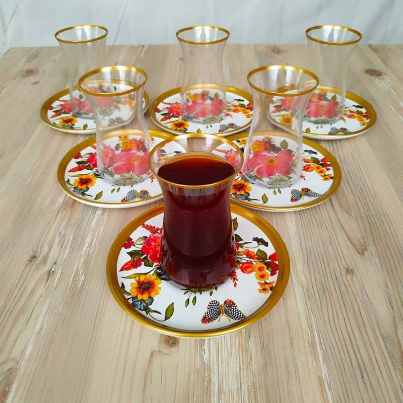 Set Includes: 6 Thin Waist Tea Glass Cups, 6 Glass Saucers