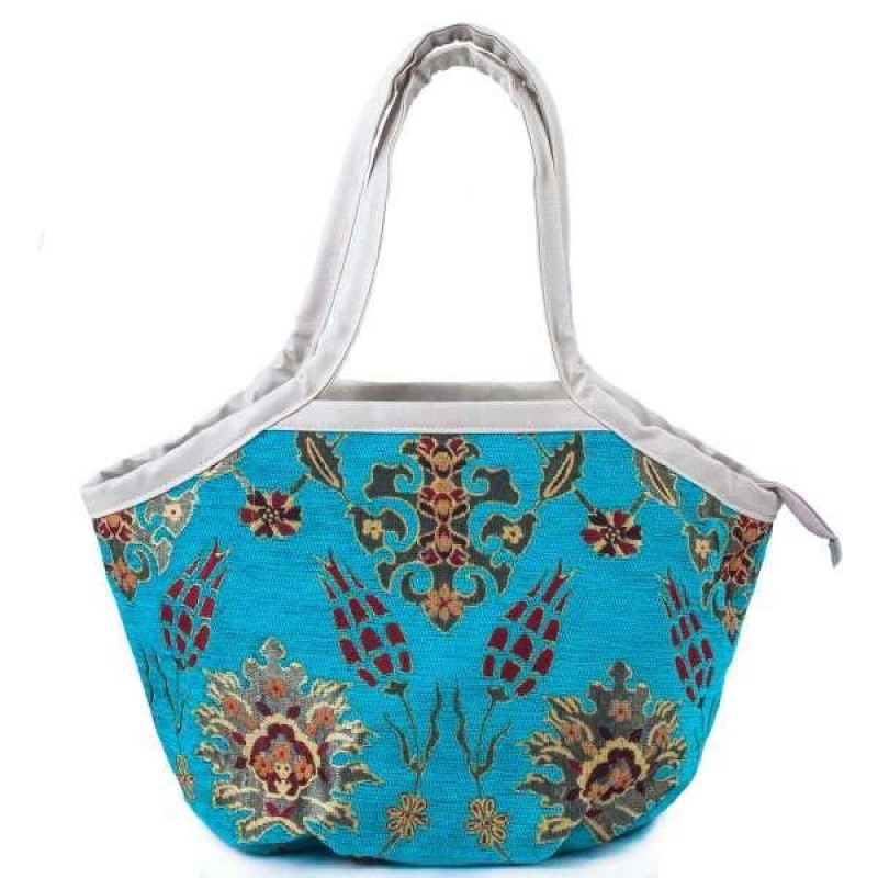 Turquoise Color Turkish Kilim Bag Floral Patterned