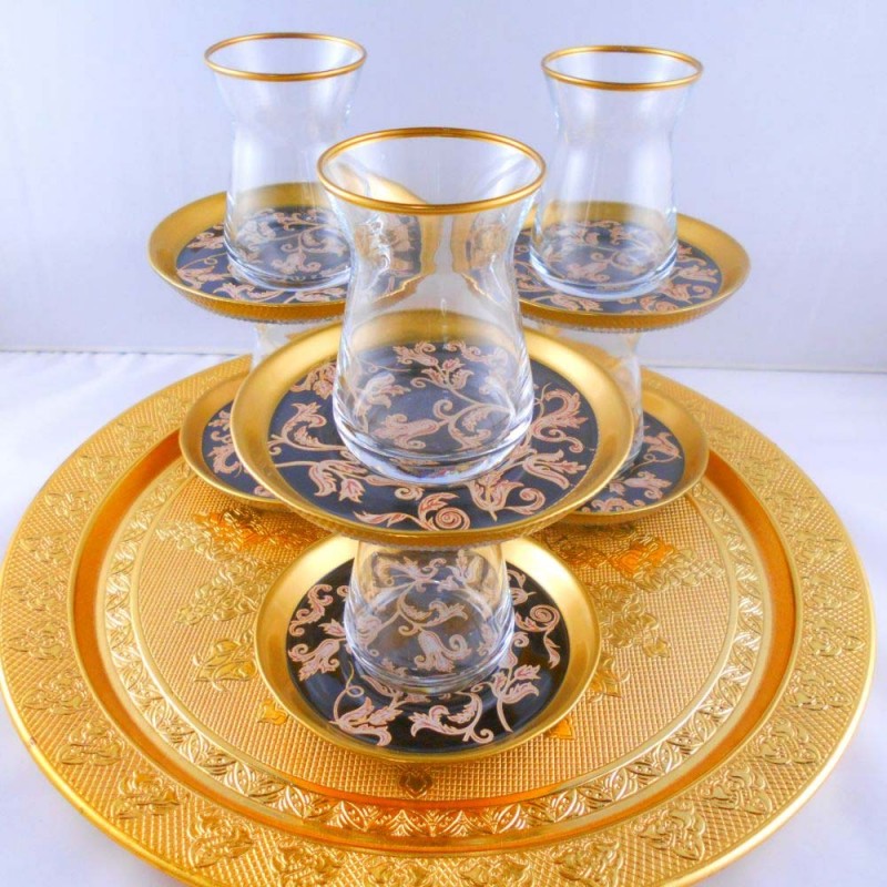 Bohemia Crystal 12 Pcs Oriental Thin Waist Tea Cups Set