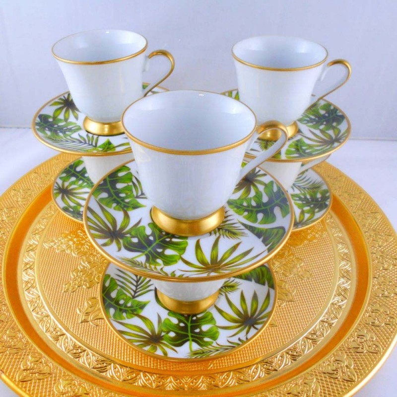 Bohemia Crystal Leaves Pattern Coffee Cups Set