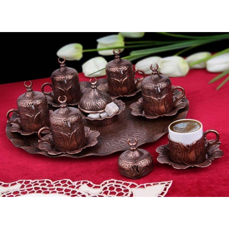 Copper Turkish Coffee Cups Set For Six PersonHeight: Each Coffee Cup: 10 cm, Bowl: 10cm