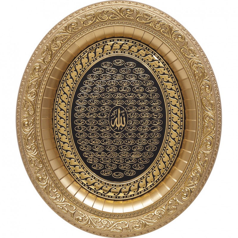 Gold – Black Oval Esma-Ul Husna Model Islamic Wall Frame