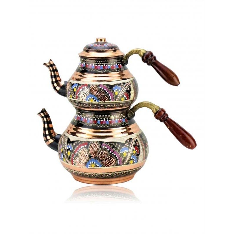 Handmade Original Copper Turkish Tea PotHeight: 28 cmDiameter:20 cmWeight: 1,1 kgLittle Pot:0,90 lt...