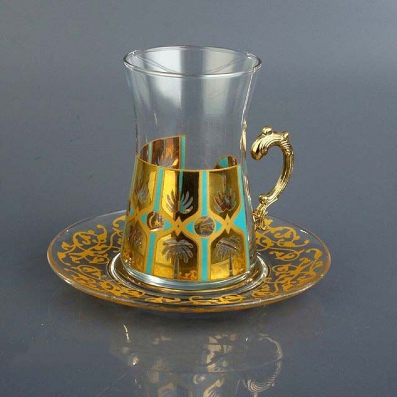 Luxury Gold Plated Turkish Style Tea Set With Holder For Six