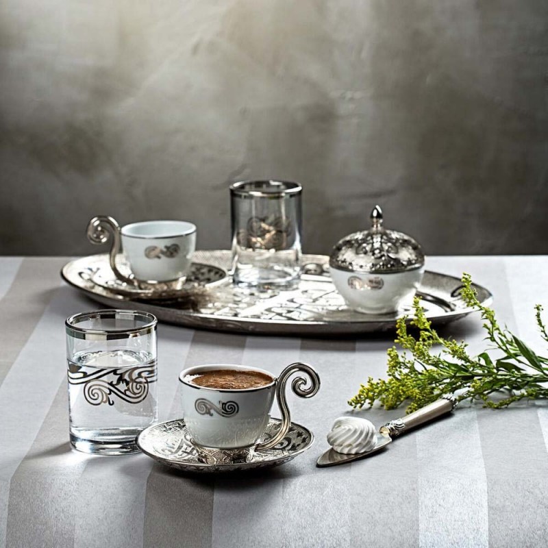 Silver Espresso Coffee Set Cups Set For Two With Glasses