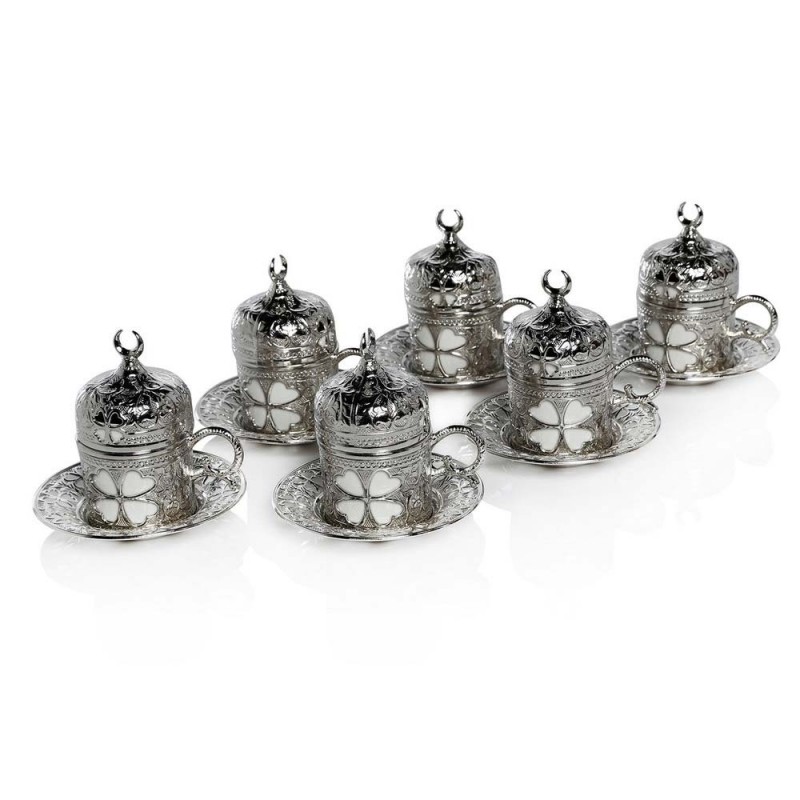 Silver Turkish Coffee Cups Clover Design Six Pieces