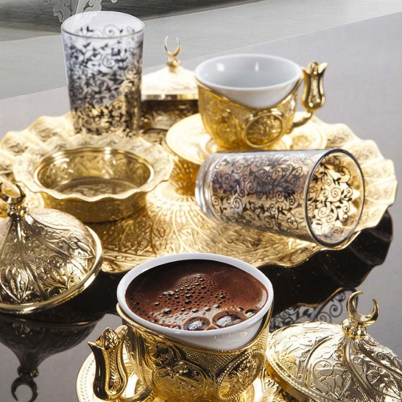 Turkish Coffee Gift Set For Two Person With Glasses Golden